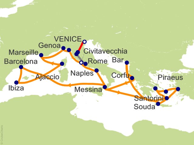 From Venice, (Italy) to Civitavecchia (Rome), (Italy)