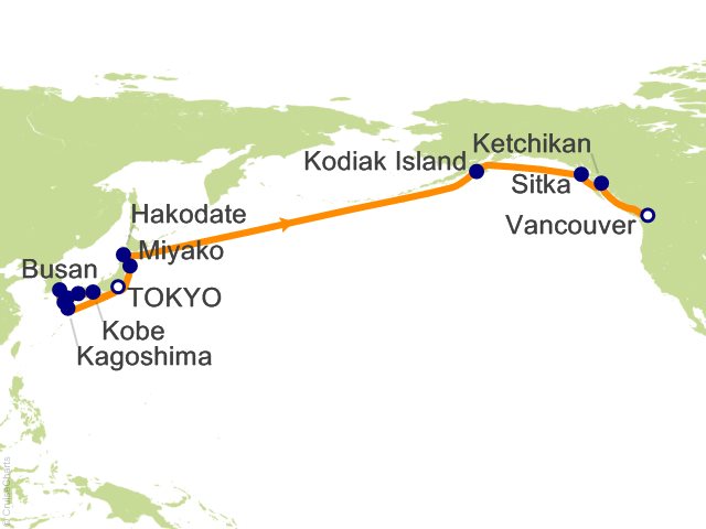 From Tokyo, (Japan) to Vancouver, British Columbia, (Canada)