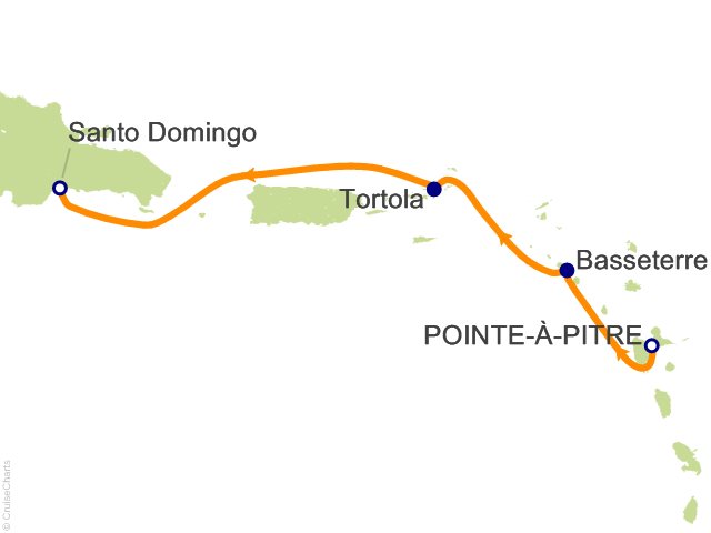 From Pointe-a-Pitre, (Guadaloupe) to Santo Domingo, (Dominican Republic)
