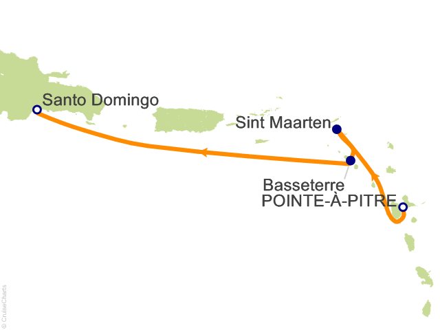 From Pointe-a-Pitre, (Guadaloupe) to Santo Domingo, (Dominican Republic)