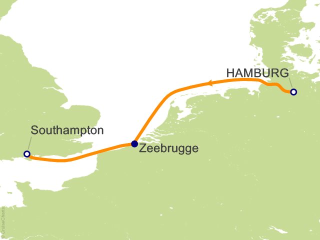From Hamburg, (Germany) to Southampton, (United Kingdom)