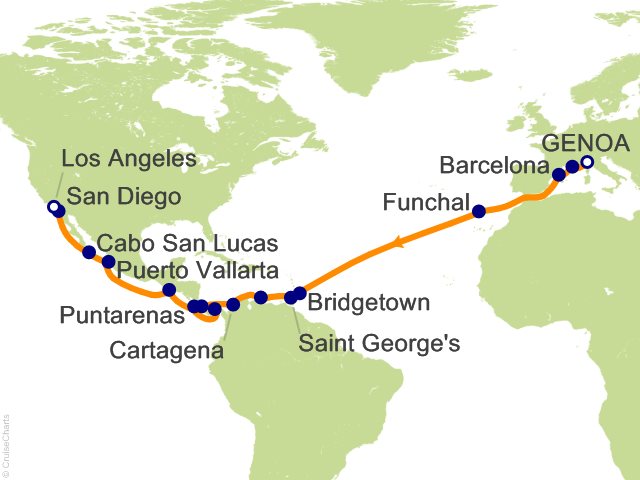 From Genoa, (Italy) to Los Angeles, California, (United States)