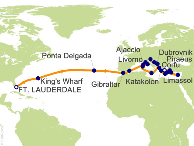 From Fort Lauderdale, Florida, (United States) to Athens (Port of Piraeus), (Greece)