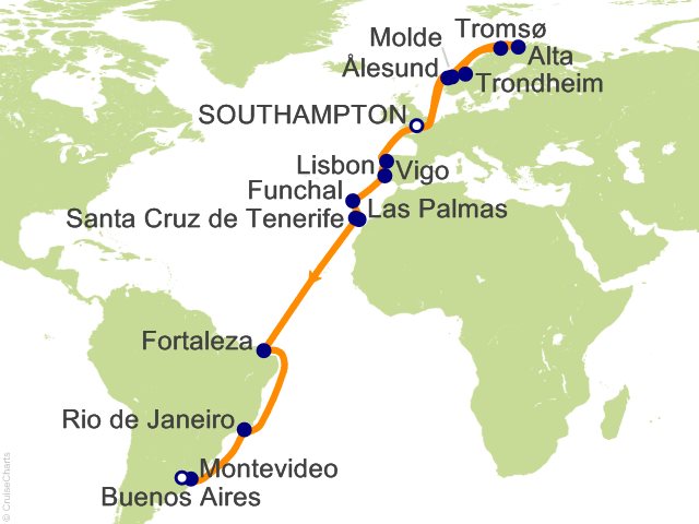 From Southampton, (United Kingdom) to Buenos Aires, (Argentina)