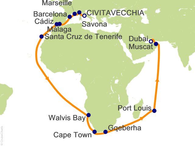 From Civitavecchia (Rome), (Italy) to Dubai, (United Arab Emirates)