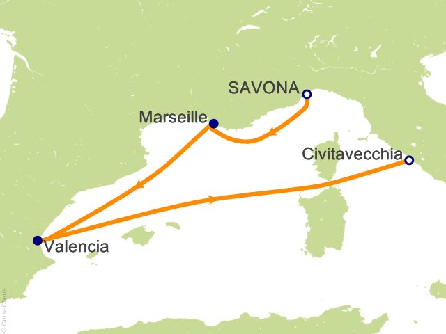 From Savona, (Italy) to Civitavecchia (Rome), (Italy)
