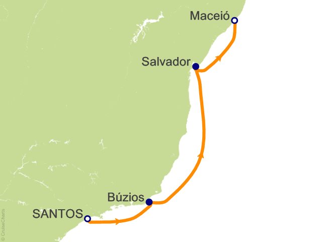From Santos (Sao Paulo), (Brazil) to Maceio, (Brazil)