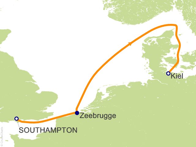 From Southampton, (United Kingdom) to Kiel, (Germany)