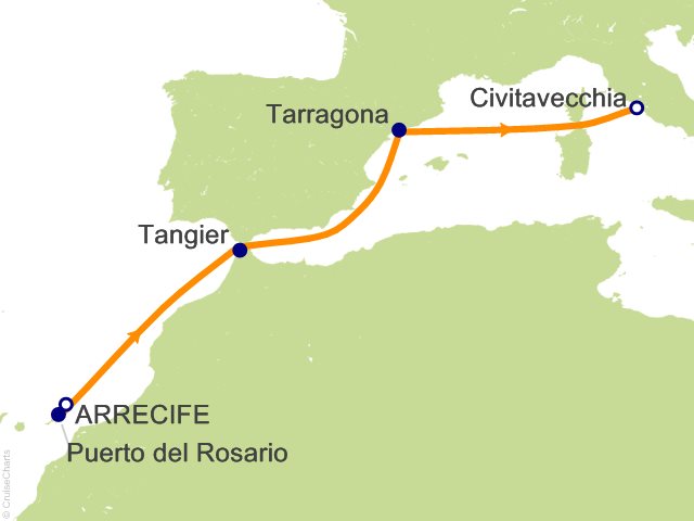 From Arrecife, (Spain) to Civitavecchia (Rome), (Italy)