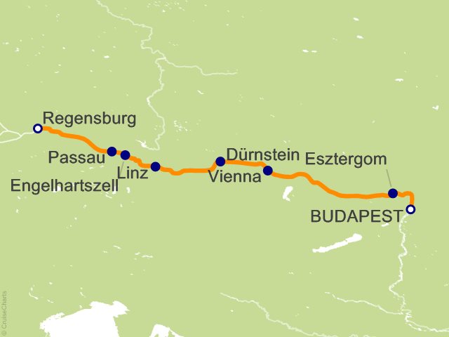 From Budapest, (Hungary) to Regensburg, (Germany)