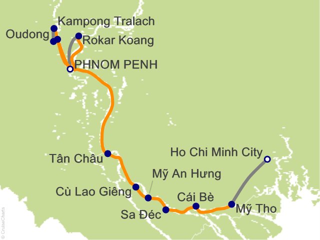Known as 'Mango Island', Cu Lao Gieng is a small, scenic island untouched by tourism located along the upper Mekong River. Travel by local motorcycle rickshaw through the island's villages to visit families who work in a variety of local industries, including mango farming, boat construction, and temple incense sticks. Return to Emerald Harmony by sampan and sail to My An Hung Island. Recognized as a cultural and historical destination, this small rural village specializes in cultivating red-hot chilli and peppers. As part of your EmeraldPLUS experience, listen to local folk singing, wander through coconut farms, and immerse yourself in traditional village life. ... Read More