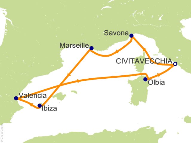 From Civitavecchia (Rome), (Italy) to Civitavecchia (Rome), (Italy)
