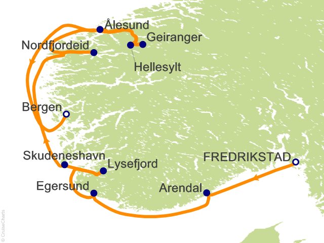 From Fredrikstad, (Norway) to Bergen, (Norway)