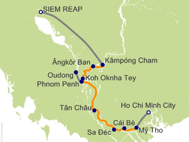 Your cruise concludes in My Tho Port, where you'll disembark and transfer via motorcoach to Ho Chi Minh City. (B); Note: All guests will be transferred from the ship to the Sofitel Saigon Plaza in Ho Chi Minh City. Consider scheduling your onward flight to depart Ho Chi Minh City after 2:30 pm today to avoid potential missed connections. ...
