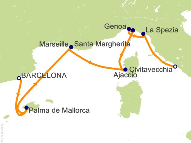 From Barcelona, (Spain) to Civitavecchia (Rome), (Italy)