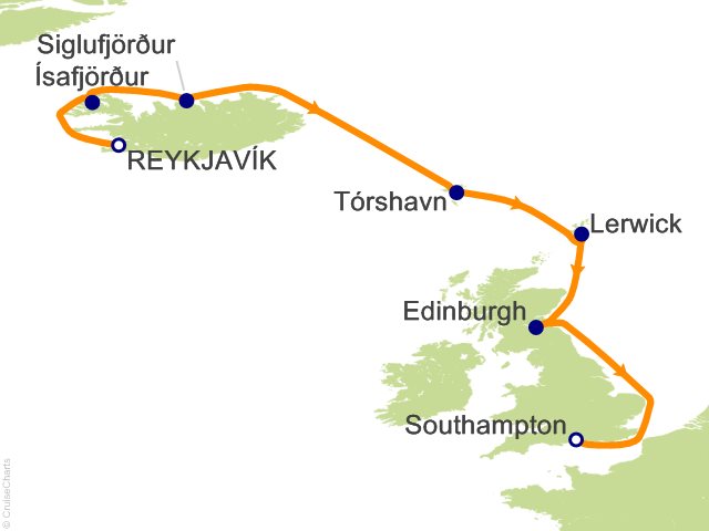 From Reykjavik, (Iceland) to Southampton, (United Kingdom)