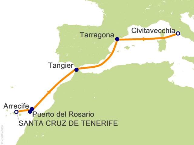 From Santa Cruz de Tenerife, (Spain) to Civitavecchia (Rome), (Italy)