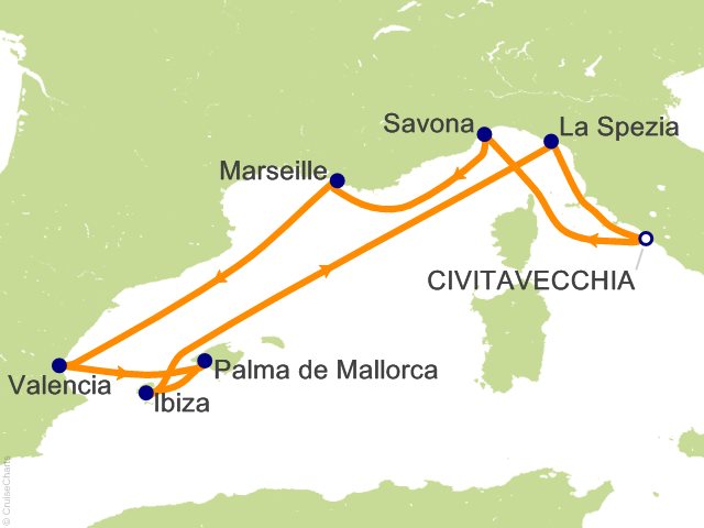 From Civitavecchia (Rome), (Italy) to Civitavecchia (Rome), (Italy)