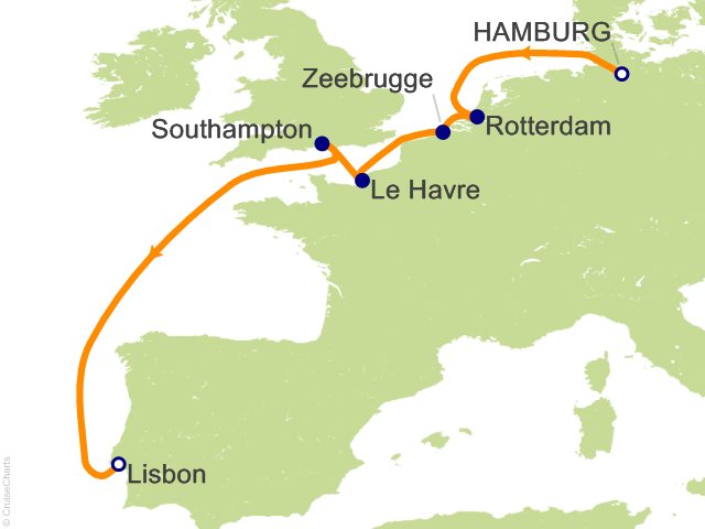 From Hamburg, (Germany) to Lisbon, (Portugal)