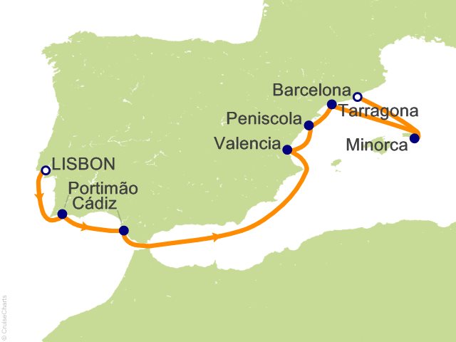 From Lisbon, (Portugal) to Barcelona, (Spain)