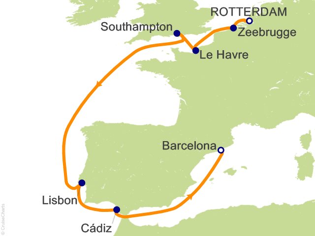 From Rotterdam, (Netherlands) to Barcelona, (Spain)