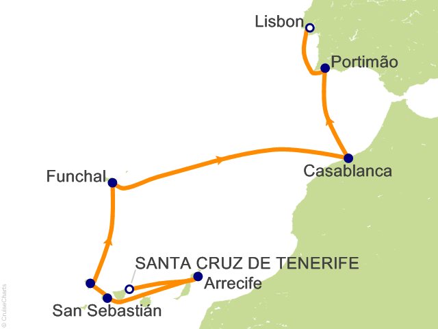 From Santa Cruz de Tenerife, (Spain) to Lisbon, (Portugal)